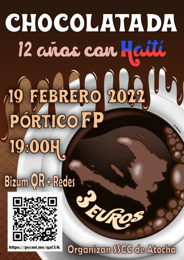 Un año más los Salesianos Cooperadores de Atocha organizan la tradicional «Chocolatada» para recaudar fondos de ayuda a Haití. Os animamos a colaborar en esta bonita iniciativa que llevan haciendo 12 años.