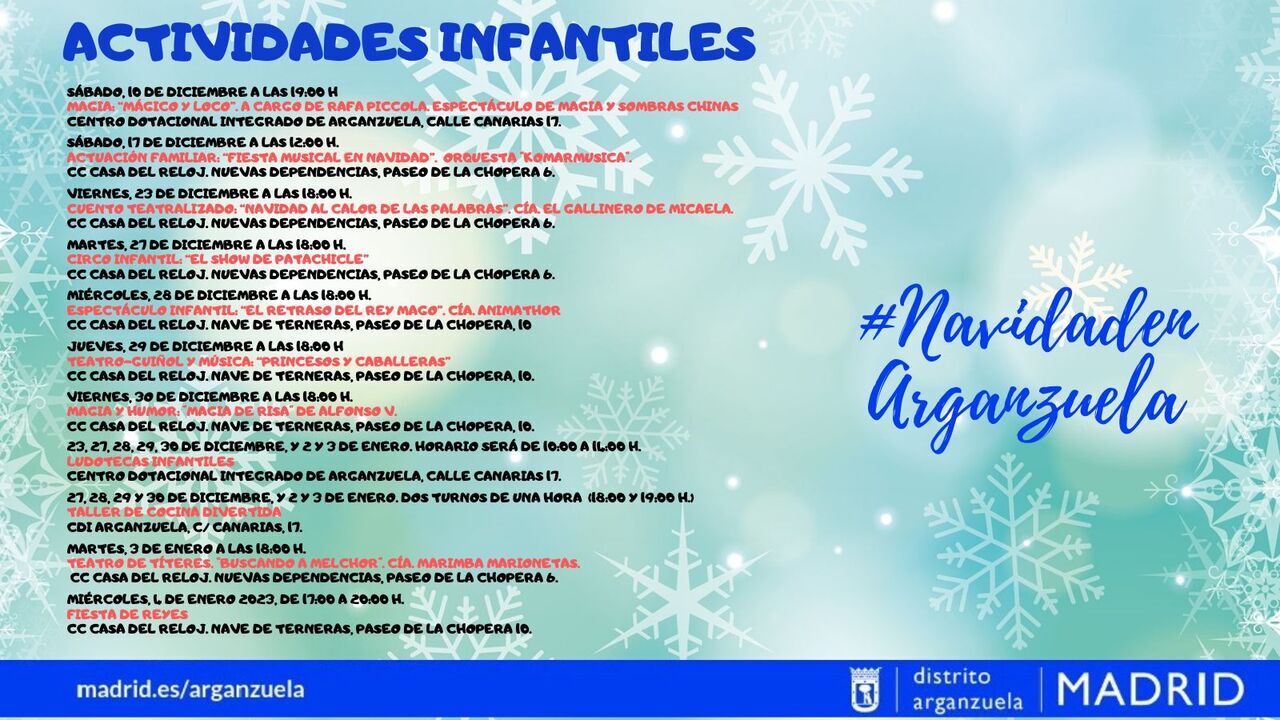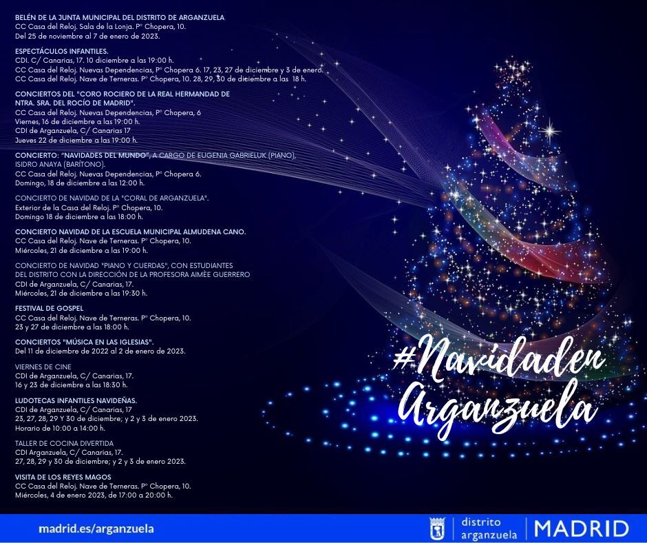 Aquí tenemos la programación de la Junta Municipal de Arganzuela, esperamos que todos tengamos y disfrutemos de unas Felices Fiestas!! #NavidadenArganzuela