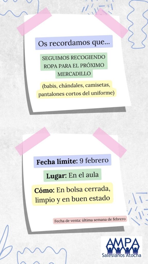 Recordatorio Mercadillo Ropa Escolar